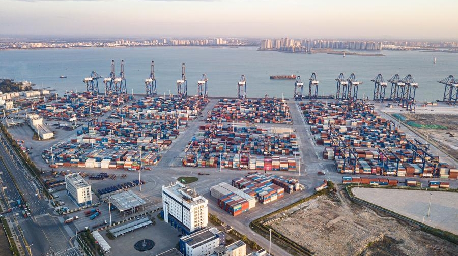 Reger Betrieb am Hafen von Tianjin während der Neujahrsfeiertage