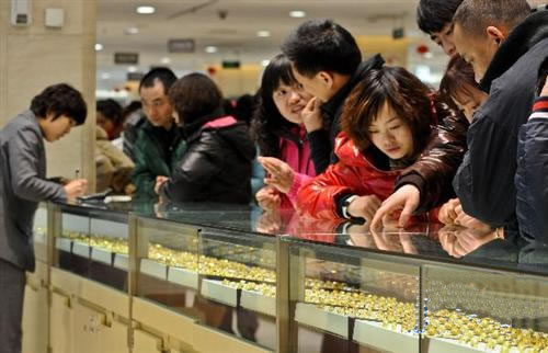 "Während der Ferien ist der Umsatz fast fünf Mal höher als sonst", sagte Du Feng, Geschäftsführer des Goldladens Shanghai Lao Feng Xiang. "Aber fast alle Kunden kaufen bei uns Goldschmuck. Es gibt wenige Goldanleger."