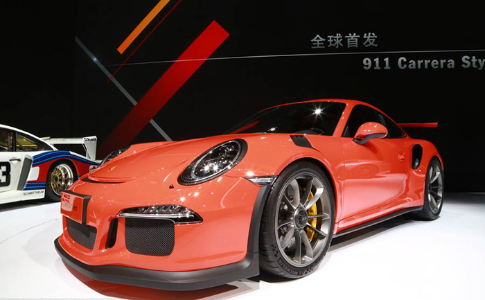 Der Porsche 911 GT3 RS hat Premiere in China auf der 16. Shanghaier Internationalen Automobilausstellung (Foto vom 20. April 2015).