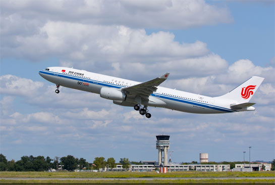 Air China fliegt schon seit Langem Airbus. Nun hob in Toulouse die erste Maschine des Typs A330 mit einem erhöhten Höchstabfluggewicht von 242 Tonnen ab. Der verbesserte Passagier-Jet verbraucht zudem weniger Treibstoff und hat eine größere Reichweite.