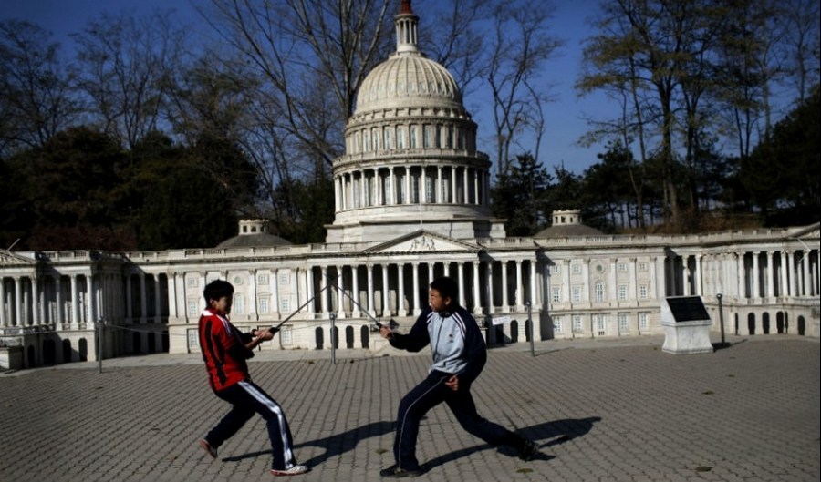 Die verkleinerte Attrappe des amerikanischen Kapitols in Beijing.