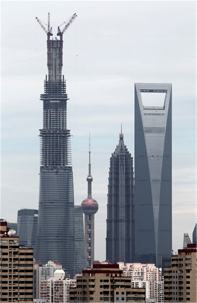 Der Shanghai Tower vervollständigt das lange geplante Trio superhoher Gebäude in Lujiazui. Zusammen mit dem 492 Meter hohen Shanghai World Financial Center und dem 420 Meter messenden Jin Mao Tower soll Lujiazuis Ruf als Zentrum für Weltklasse-Finanzunternehmen und -Konzernzentralen zementieren.
