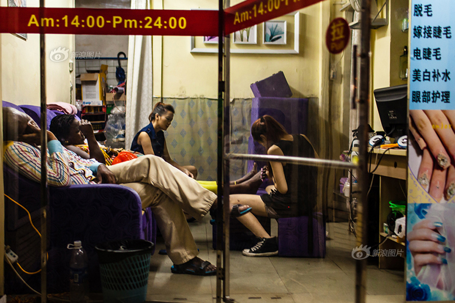 Die Afrikaner aus der Baohanzhi Straße gehen gerne in Schönheitssalons. Afrikaner haben auch Schönheitssalons im Dengfeng Plaza eröffnet.