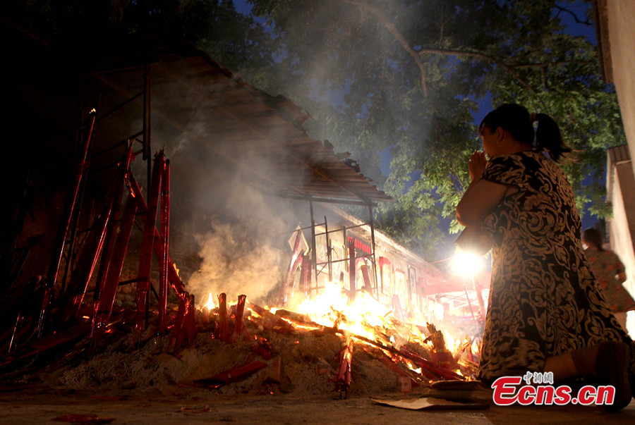 Eine Frau betet vor einem heiligen Weidenbaum, ein Brauch, der den Kindern der Betenden zum Erfolg bei der herannahenden Gaokao, Chinas Hochschulaufnahmeprüfung, verhelfen soll.
