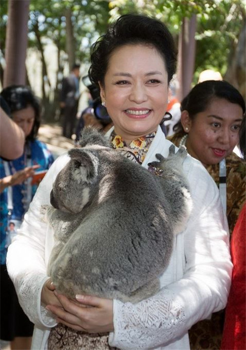 Das Foto der First Lady Peng Liyuan mit einem Beutelbär in Australien wird von den chinesischen Netizen als „萌萌哒“ ausgezeichnet.