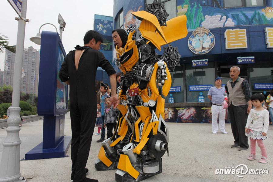 - "Transformer" zu spielen ist nicht so leicht. Die beiden Schauspieler müssen den Panzer von 30 Kilogramm tragen.