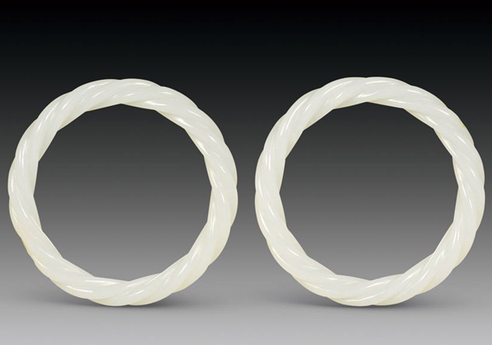 Zwei Jade-Armreife aus der Zeit der Qing-Dynastie. Sie wurden bei der "25. Vierteljährlichen China Guardian-Auktion" für 57.500 Yuan (8.100 Euro) verkauft.