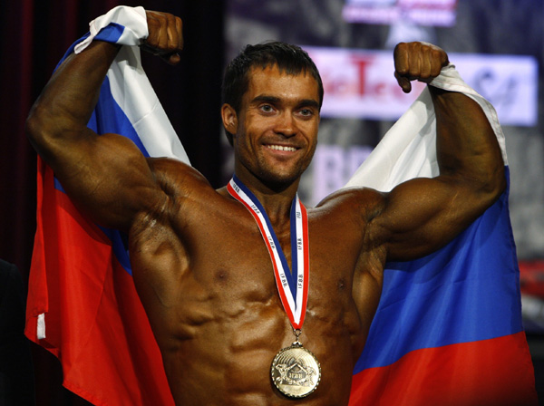 Artem Diyanov aus Russland lässt sich fotografieren, nachdem er den ersten Platz im Bodybuilding der Männer in der Kategorie bis 171 cm bei den Amateur-Bodybuilding-Weltmeisterschaften der Männer in Budapest belegt hat. (Foto vom 21. November 2010). [Xinhua/Reuters]