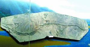 Das authentische Fossil des Qian Ichthyosauria fossil ist beschädigt.