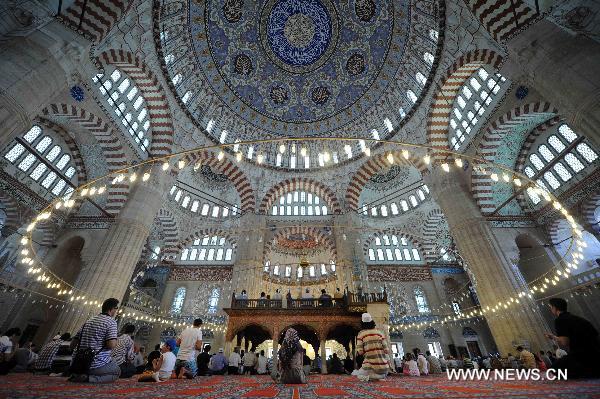 Auf diesem im türkischen Edine aufgenommenen Foto vom 9. Juli 2011 ist das dekorative Muster an der Decke der Selimiye-Moschee zu sehen.