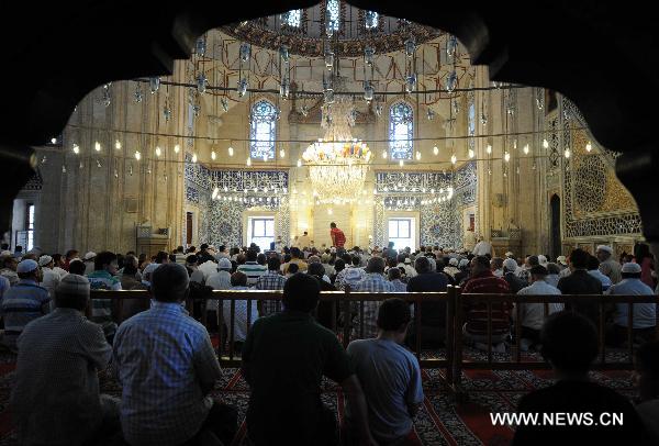 Muslimische Gläubige bei ihrem Freitagsgebet in der Selimiye-Moschee im türkischen Edirne am 9. Juli 2011.