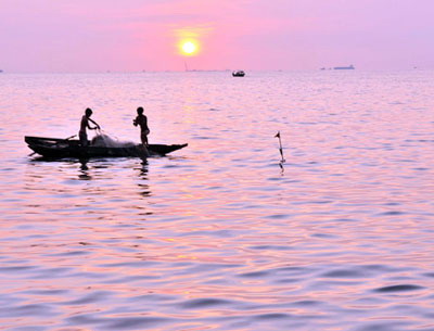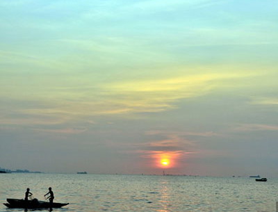 Vor Tagen ist es in Yecheng, das in der Bucht von Haikou auf der südchinesischen Insel Hainan liegt, nach einigen schwülen Tagen endlich etwas abgekühlt. Der Sonnenuntergang erinnert an eine chinesische Tuschemalerei.