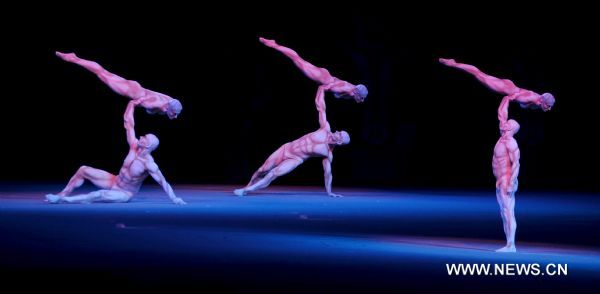 Ein Mehrfach-Belichtungsfoto vom 30. Oktober zeigt Kanadier bei ihrer Akrobatik-Aufführung auf der Abschlusszeremonie für das 13. Internationale Akrobatik-Festival in Shijiazhuang, der Hauptstadt von Hebei.