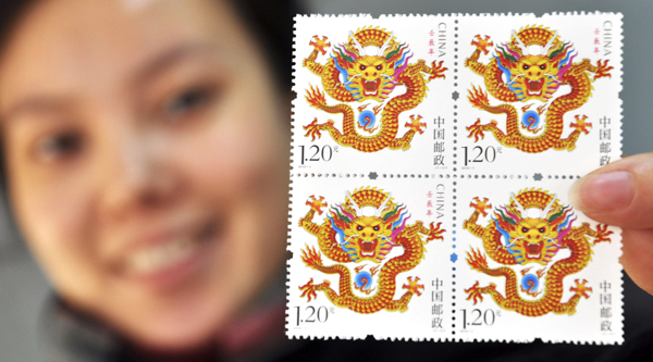 Die Briefmarken zum Jahr des Drachen stehen ab sofort zum Verkauf zur Feier des chinesischen Neujahrs, das dieses Jahr auf den 23. Januar fällt. Sammler aus Shanghai können die Briefmarken in jeder der 79 Poststellen in Beijing erstehen. Jede Briefmarke hat einen Nennwert von 1,20 Yuan, oder 15 Cent, und ein Sondermarkenheft ist zum Preis von 12 Yuan erhältlich, so das Postunternehmen. Die Tierkreiszeichen werden in limitierter Auflage herausgegeben, daher sollten man sich mit dem Kauf beeilen.