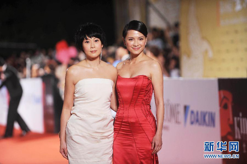 Chinesische Schauspielerinnen Rene Liu und Li Xinjie auf dem Roten Teppich.