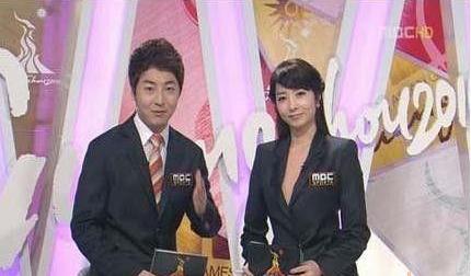 Eine südkoreanische Moderatorin trug bei einer Sendung über die Asia Games einen hautfarbenen Pullover und Rock.