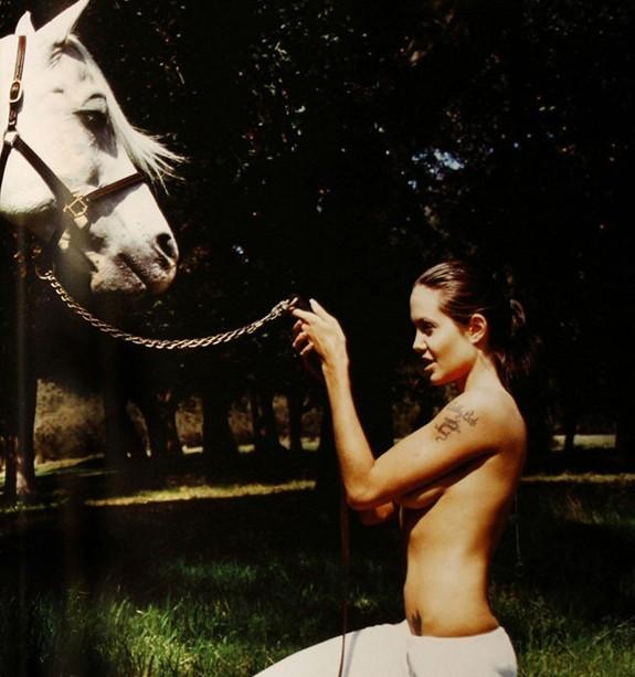 Angelina Jolies Foto unter den Hammer: oben ohne mit Pferden