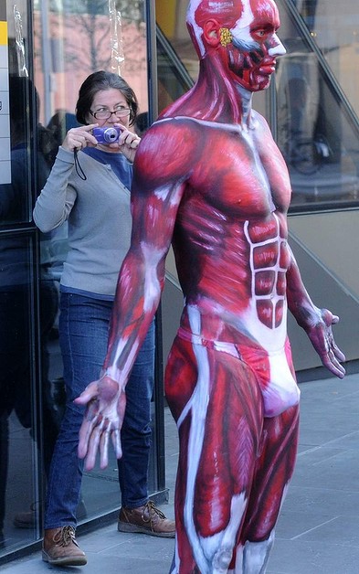 Laut der australischen Tageszeitung "The Age" hat ein Professor an der Royal Melbourne Institute of Technology University eine neue Methode für seinen Unterricht gefunden: Mit der Körperbemalung auf einem lebendigen Model will er Anatomie erklären.