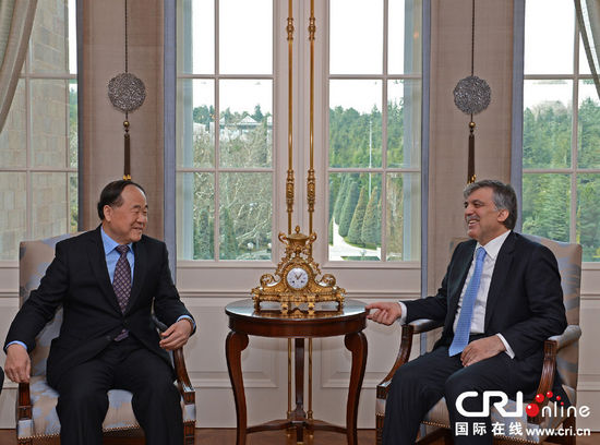 Der türkische Präsident Abdullah Gul (rechts) traf den chinesischen Nobelpreisträger Mo Yan am Freitag