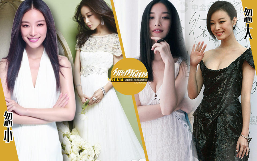 Chinesische Schauspielerin Ni Ni hat mal kleine (links) mal große (rechts) Busen.