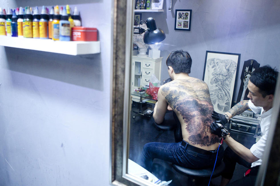 Ein Mann lässt einen Teil der chinesischen Malerei Entlang des Flusses während des Qingming-Festes (auch „Qingming-Rolle“ genannt) auf seinen Rücken tätowieren. Die Arbeiten an der 50 Zentimeter langen und 38 Zentimeter breiten Tätowierung hat wegen der vielen Einzelheiten gut sieben Tage gebraucht.