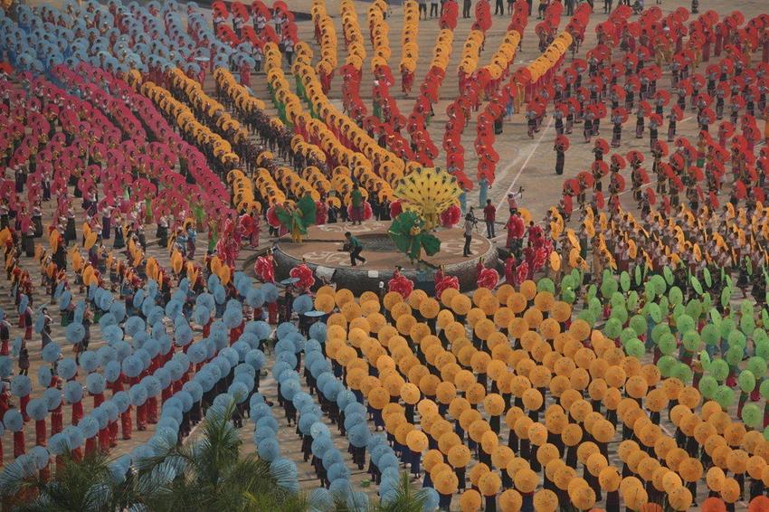 Am 14. April tanzten die Menschen der Dai-Minderheit in der Stadt Jinghong, die sich in der südwestchinesischen Provinz Yunnan befindet, bei einer Veranstaltung einen traditionellen Dai-Tanz, bei denen Papierschirme verwendet werden.