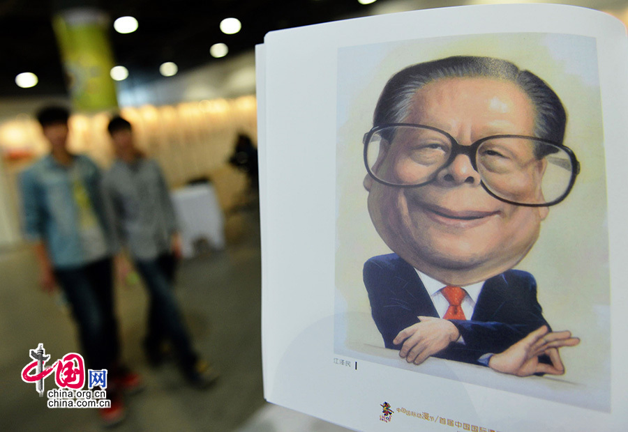 - Eine Karikatur des chinesischen Staatspräsidenten Xi Jinping wird beim zehnten International Cartoon and Animation Festival in Hangzhou ausgestellt. Foto vom 29. April 2014: Sechs Karikaturen von amtierenden und pensionierten chinesischen Staatsführern haben die Aufmerksamkeit der Zuschauer auf sich gezogen.