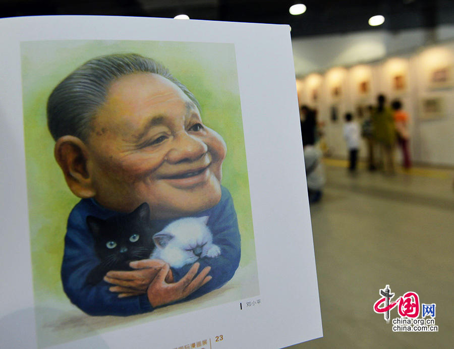 - Eine Karikatur des chinesischen Staatspräsidenten Xi Jinping wird beim zehnten International Cartoon and Animation Festival in Hangzhou ausgestellt. Foto vom 29. April 2014: Sechs Karikaturen von amtierenden und pensionierten chinesischen Staatsführern haben die Aufmerksamkeit der Zuschauer auf sich gezogen.