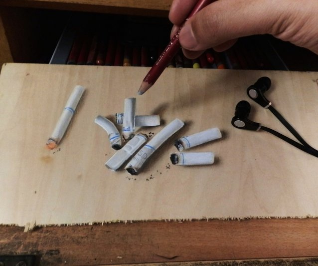 Illusion auf Holz: hyperrealistische Zeichnungen von Ivan Hoo