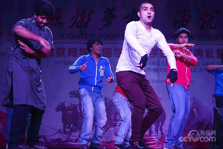 Pakistanische Studenten tanzen auf einer Party in der China University of Petroleum in der ostchinesischen Stadt Qingdao (Foto vom 25. Dezember 2013).