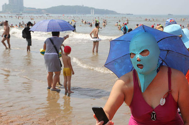 Die Gesichtsmaske wurde von einer 58 Jahre alten Frau namens Zhang Shifan erfunden. Der Facekini wird am häufigsten in der chinesischen Küstenstadt Qingdao von Frauen mittleren Alters genutzt, die gerne sonnenbaden gehen, aber die Bräune hassen.