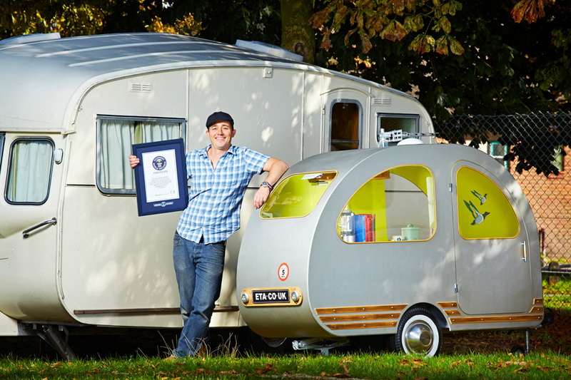 Der 43-jährige Yannick Read aus England baute den süßen Mini-Wohnwagen: 2,39 Meter lang, 1,5, Meter groß, 0,79 Meter breit und 131,1 Kilometer schwer. "Wenn ich mit diesem Auto unterwegs bin, sehe ich immer Leute, die mich anlächeln. Das gefällt mir sehr", sagt Yannick.