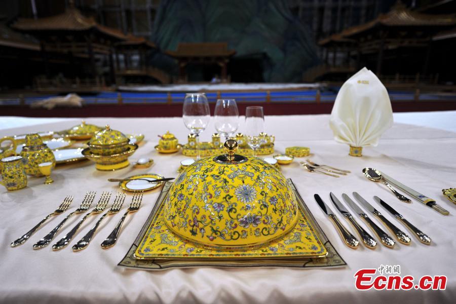 Das besondere Geschirr vom Begrüßungsbankett für das APEC-Treffen ist am 15. November zu sehen.
