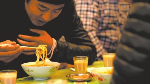 Als berühmteste Spezialität des Teehauses gelten die tibetischen Nudeln. Die Köche sagen, die Kochweise hier sei nicht speziell. Genau wie bei den anderen Restaurants werden die Nudeln zuerst gedrückt und gar gekocht. Dann werden sie in der Luft getrocknet. Bei der Zubereitung werden die getrockneten Nudeln mit Wasser gekocht und dann in Schalen gefüllt. Man gibt schließlich Rindfleischsuppe und -stücke dazu. Trotzdem meinen alle Kunden, die die tibetischen Nudeln in diesem Teehaus probiert haben, dass der gute Geschmack aus der von den Vorfahren überlieferten Suppe kommt. Leider verriet der Restaurantbesitzer nicht das Rezept.