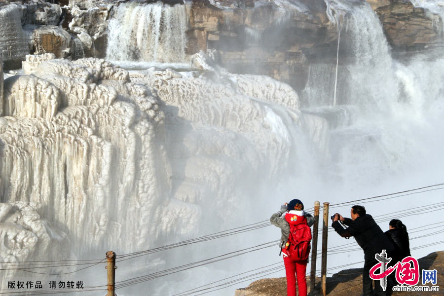 - Silberschmelze bildete sich auf beiden Seiten des Hukou Wasserfalls des Huanghe Flusses in der nordchinesischen Provinz Shanxi, als die Temperatur fiel. Die spektakuläre Szene aus Eiszapfen und Eissäulen zog viele Touristen an.