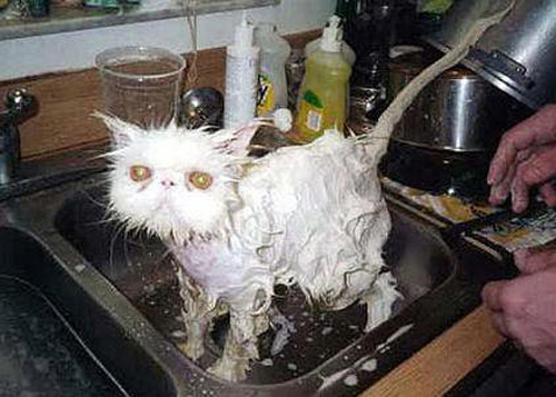 Lustige Fotos: Für Katzen ist Waschen eine Katastrophe