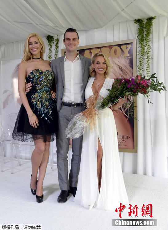 Dani Mathers (rechts) und Cooper Hefner, der Sohn vom Playboy-Gründer Hugh Hefner (Mitte),sowie die Titelträgerin des letzten Jahres Kennedy Summers.