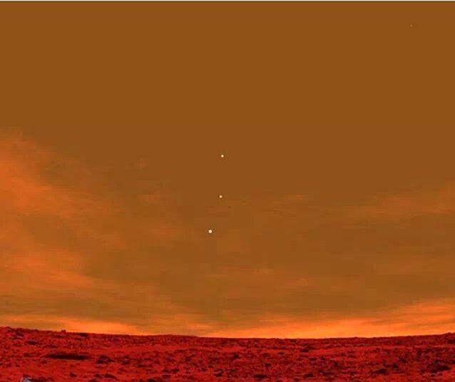 Foto aus der Perspektive des Mars: Erde, Jupiter und Venus laufen linear.