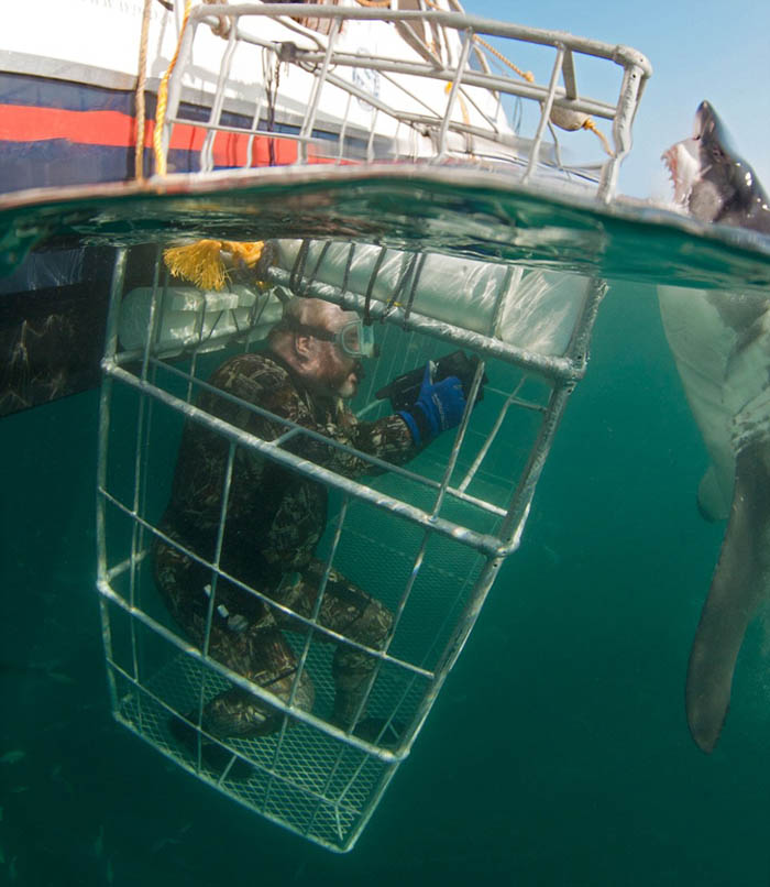Mensch und Weißer Hai auf Tuchfühlung