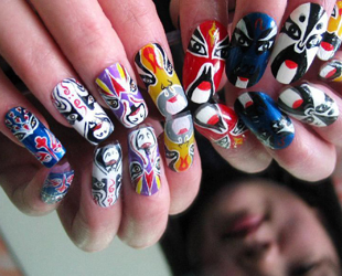 Das Foto vom 2. Januar 2005 zeigt Fingernägel, die mit den Motiven der Peking-Oper-Masken bemalt wurden. Gesehen in Jinan, der Hauptstadt der ostchinesischen Provinz Shandong.