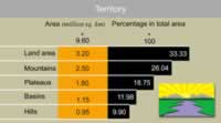 verschiedenen Geländeverhältnisse: Gebirge ca. 33%, Hochplateaus ca. 26%,