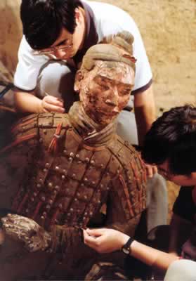 Bei der Ausgrabung einer Tonfigur aus der Qin-Dynastie