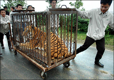 ![]() Ein Südchina-Tiger ist vom Shanghaier Flughafen aus zu einer romantischen Reise nach Afrika aufgebrochen, die zur Rettung der Art beitragen soll. Es gibt nur noch weniger als 100 Exemplare des Südchina-Tigers. Die vier Jahre alte männliche Raubkatze, die nur unter ihrer Zuchtnummer "327" bekannt ist, soll in einem südafrikanischen Reservat mit einem jungen weiblichen Südchina-Tiger zusammengebracht werden. Es wird gehofft, dass sich die Tiger in der natürlichen Umgebung paaren, vermehren und ihre Jagdfähigkeiten auffrischen, bevor sie in ihr angestammtes Habitat in China zurückkehren. Das Reservat für Südchina-Tiger in Suzhou hatte den Tiger freiwillig für die Paarungsmission zur Verfügung gestellt. "Südafrika verfügt über Land, Erfahrung und Beutetiere - das wird die Auswilderung des Tigers vereinfachen", sagte Li Quan, Gründerin der Stiftung Rettet Chinas Tiger. |