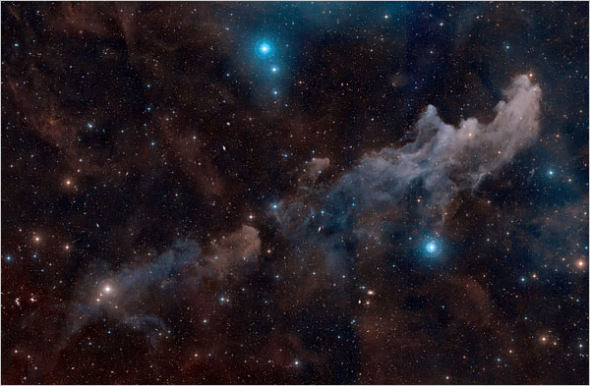 3. Hexenkopfnebel: Wie der Name bereits sagt, sieht dieser Reflexionsnebel, der mit dem Stern Rigel verbunden ist, verdächtig nach einem Märchenfigur aus. Zuvor als IC 2118 im Sternbild Orion bekannt, leuchtet der Hexenkopfnebel in erster Linie durch das Licht des Sterns Rigel. Die Farbe dieses sehr blauen Nebels liegt nicht nur an der Farbe seines Sterns, sondern auch daran, dass die Staubteilchen blaues Licht effizienter als rotes reflektieren. Eine ähnlicher physikalischer Prozess lässt tagsüber den Erdhimmel blau erscheinen. [NASA]