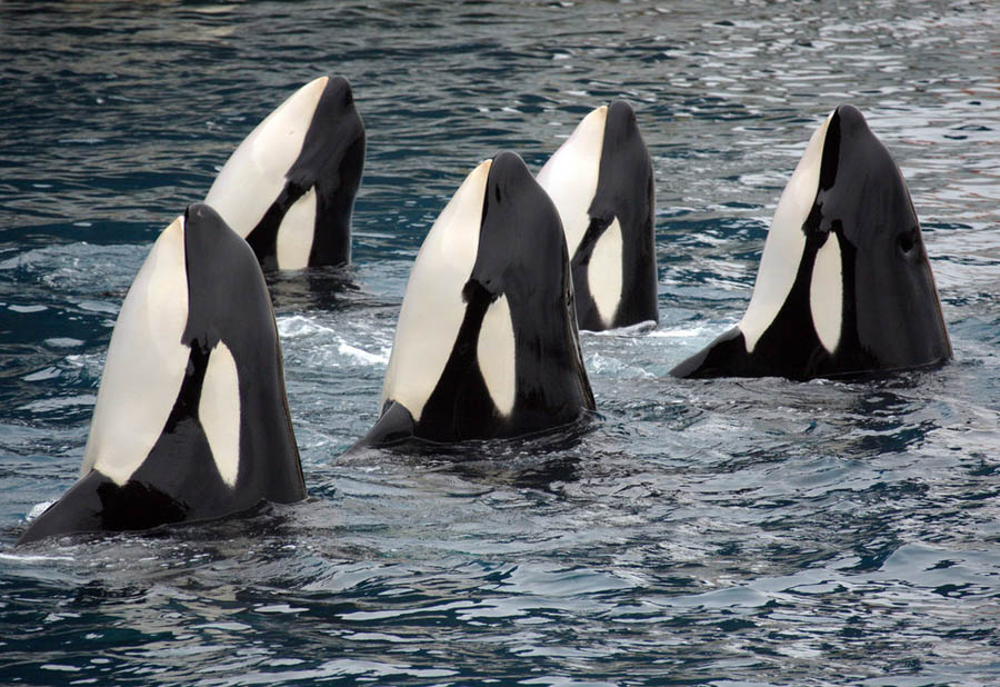 Der Schwertwal ist die größte Art der Delfine uns bekommt seinen Namen von der bis zu 1,8 Meter hohe dreieckige Finne der Bulle. Er ist weltweit verbreitet.
