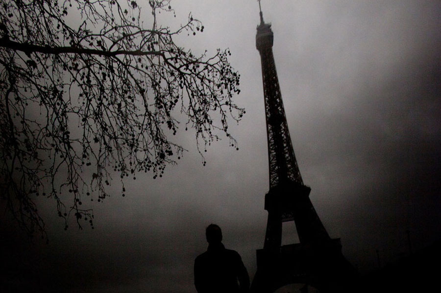 Der furchtbare Eiffelturm: Ein dunkles Winterwetter lässt den bekannten Eiffelturm in einem unheimlichen Licht erscheinen.