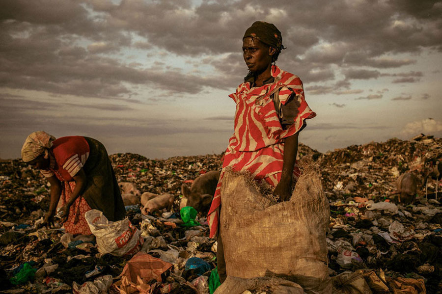 Lumpensammlerinnen in Kenia: Nur in der Abenddämmerung ist es diesen Frauen erlaubt, in den Müllstätten Lumpen zu sammeln.