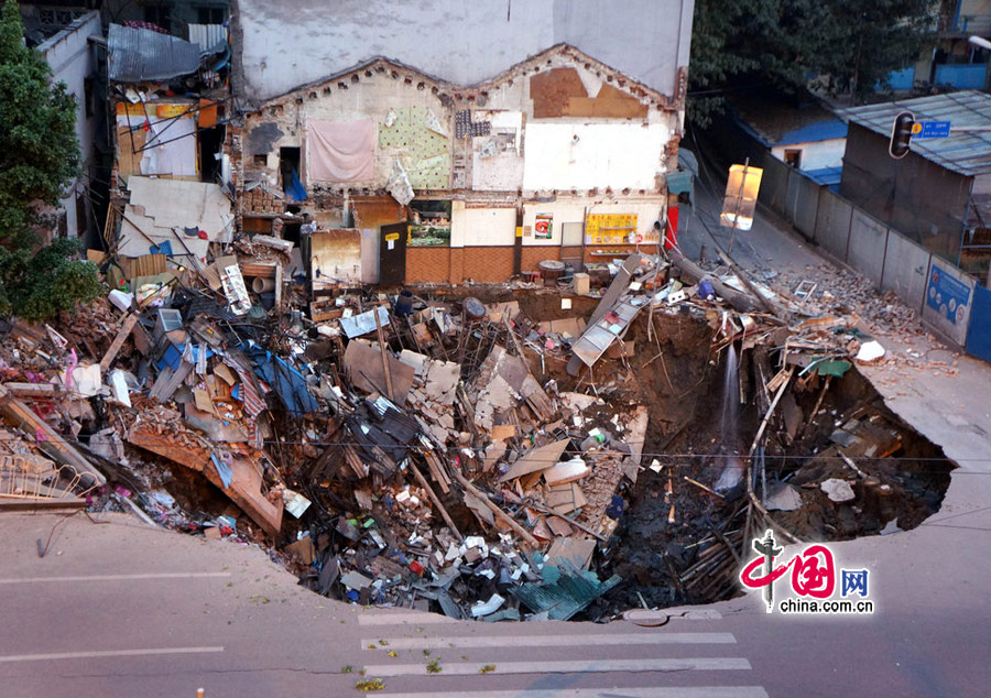 Am Montag um 16:37 Uhr ereignete sich in Guangzhou in der südchinesischen Provinz Guangdong eine Bodenabsenkung. Das Erdloch hat eine Fläche von 50 Quadratmetern und ist neun Meter tief.