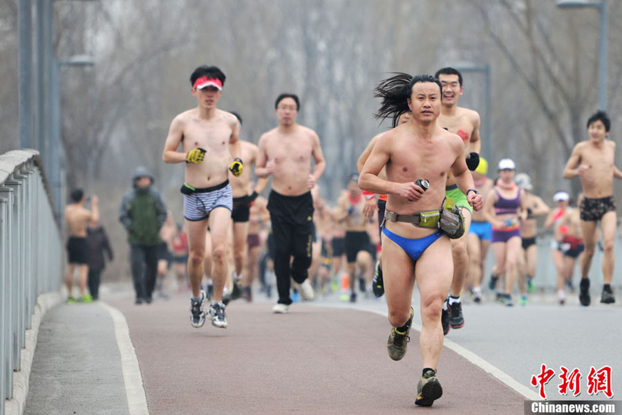 Lustiger Laufwettbewerb: "Nackte Schweine" rennen durch Beijing