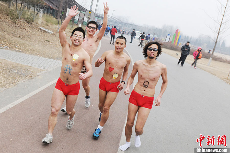 Lustiger Laufwettbewerb: "Nackte Schweine" rennen durch Beijing